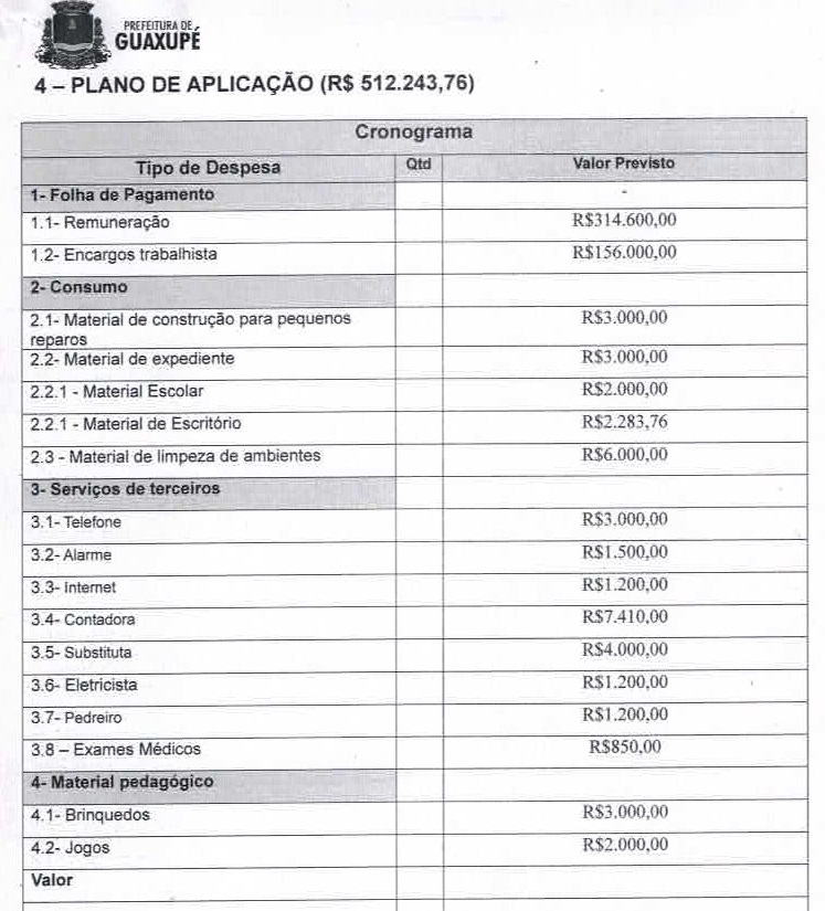 | Objeto | Atendimento educacional a 168 crianças. |